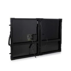 Rugged, durable, and rigid. The Boulder 100 Briefcase Solar Panel is built with strong tempered glass and an aluminum frame with added corner protection for temporary or permanent installation. Composed of two Boulder 50 Solar Panels (100 watts total) chained together and connected by a hinge. Equipped with an integrated kickstand to help get optimal angle to the sun. Included a protective canvas bag for easy carrying. Use with a Goal Zero portable power pack or portable power station to charge your gear day or night.
