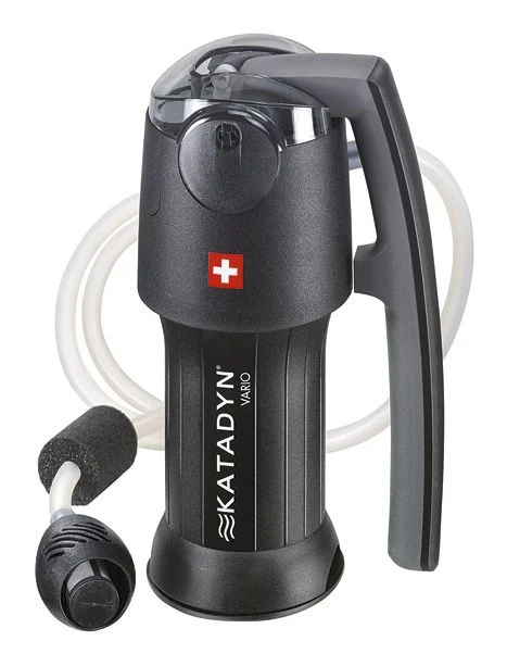 Katadyn created the Vario to be the most intelligent water filter on the market. With a simple twist you can change the Vario from a fast flow filter to a long lasting filter depending on water conditions. You can use the glass fiber filter only for fast pumping in clear water, or force the water through a ceramic disk to remove the bigger particles before it reaches the glass fiber filter. The Vario also employs a carbon filter to remove odors and tastes.
