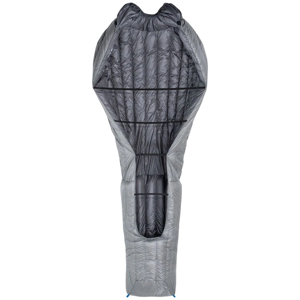 The Chilkoot 32º quilt is highly-packable, lightweight, and designed for early-to mid-season backcountry hunts. With a focus on warmth-to-weight ratio, the Chilkoot 32° quilt utilizes industry-leading materials to achieve an overall weight and temperature rating that is second to none. A Pertex® Quantum shell adds water and wind resistance to protect the 850+ Fill power goose down HyperDRY™ insulation. The quilt boasts an articulated foot box, and differential cut to provide warmth and maintain loft around the body regardless of sleeping position. A snap a closure on the collar help holds in your body heat on chilly nights. Four adjustable straps on the bottom of the quilt allow you to regulate your body temperature and keep the quilt secured to your sleeping pad. During colder nights, fully tighten these straps to maximize heat retention. Sleep with the straps fully extended on warm nights to maintain a comfortable body temp. When space, weight, and warmth are critical, the Chilkoot 32º should be in your hunting pack.