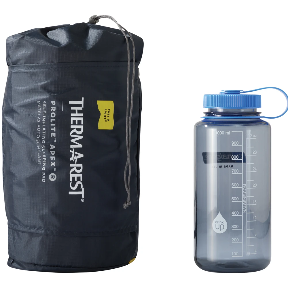 The newest addition to Thermarest tried-and-true ProLite family adds warmth and thickness without adding additional weight. The lightweight Thermarest ProLite Apex sleeping pad offers year-round warmth and comfort thanks to its unique StrataCore construction. The two-inch thick mattress ensures that you stay comfy during your backpacking adventures. Stuff sack included.